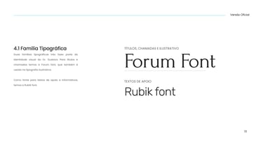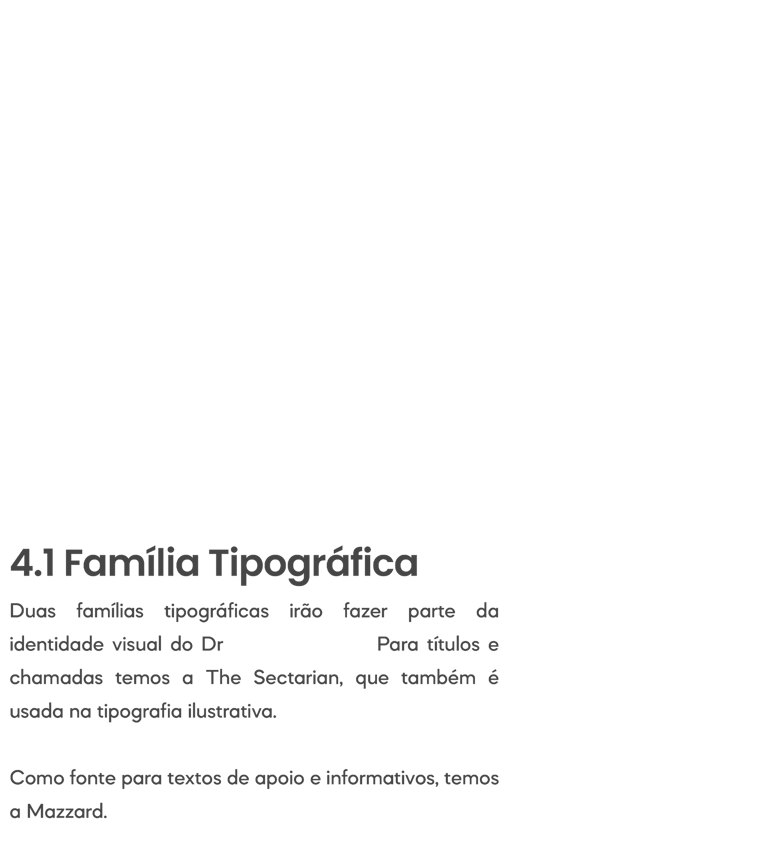 A tipografia é definida de forma estratégica, com a escolha de uma fonte principal e uma fonte de apoio, pensadas de acordo com o posicionamento e a personalidade da marca.