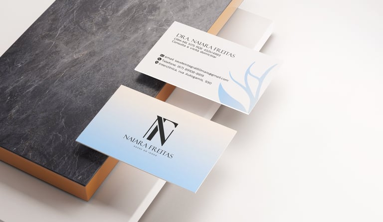 Já estão inclusas na entrega as artes do papel timbrado e do cartão de visita, desenvolvidas de acordo com a identidade visual criada.